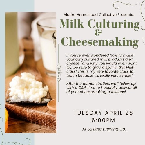 Milk Culturing – Cheese & Fermented Dairy Basics Have you ever wondered how to make fresh mozzarella from scratch? Or been curious about milk kefir, its benefits, and how to actually use it in your kitchen? This is the class for you. In this very hands-on workshop, you’ll learn how to make cheese and cultured…