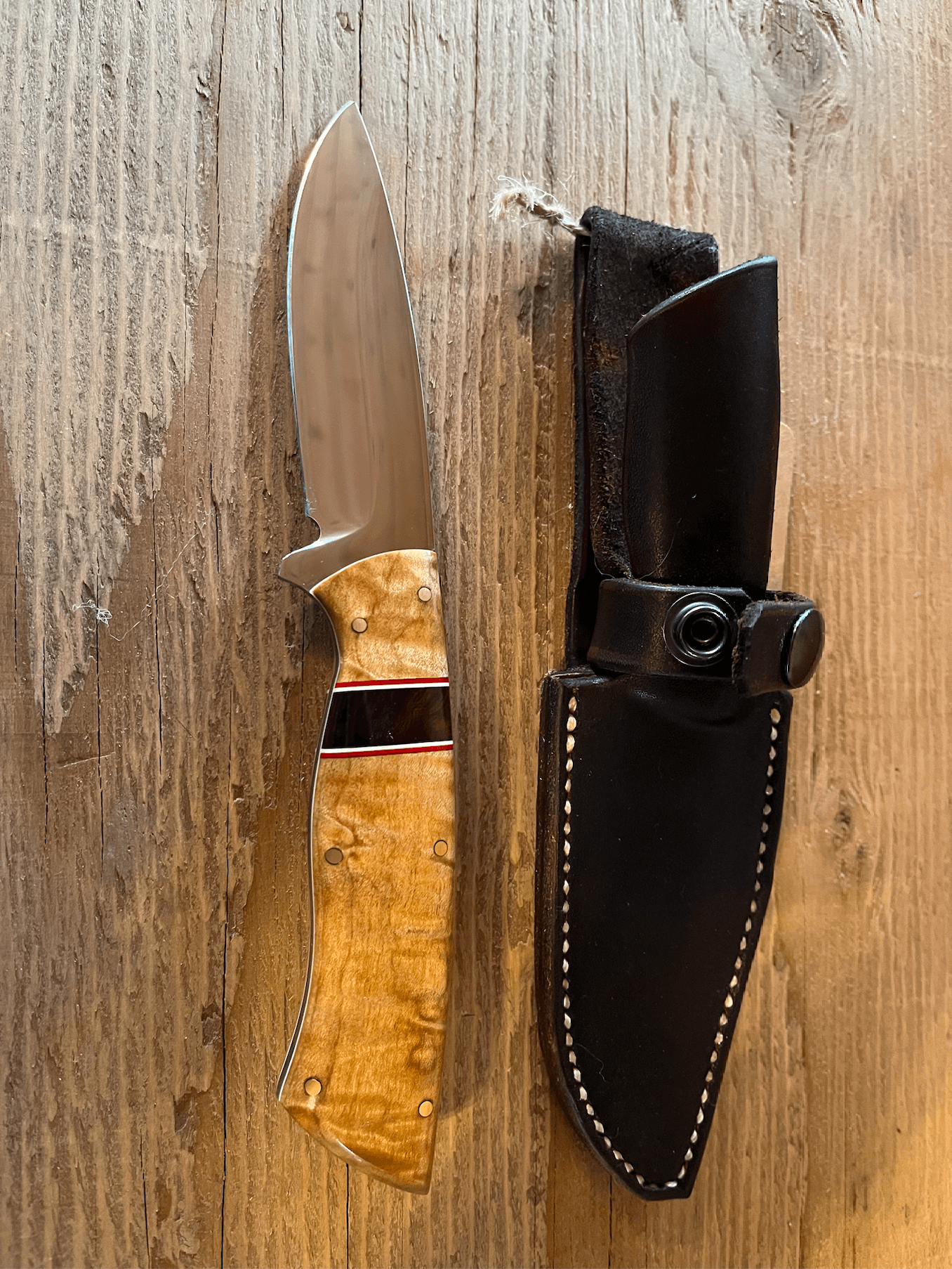 LITTLE SU – Alaska Made Hand Forged Knife with a Quilted Maple & Ironwood handle.
