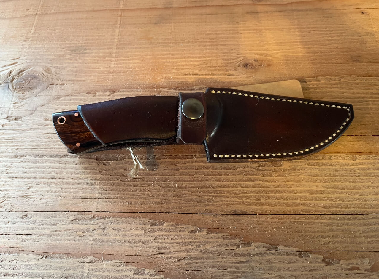 This knife was hand forged in our forge on the farm, and the handle and sheath were also 100% hand-crafted right here on the farm.